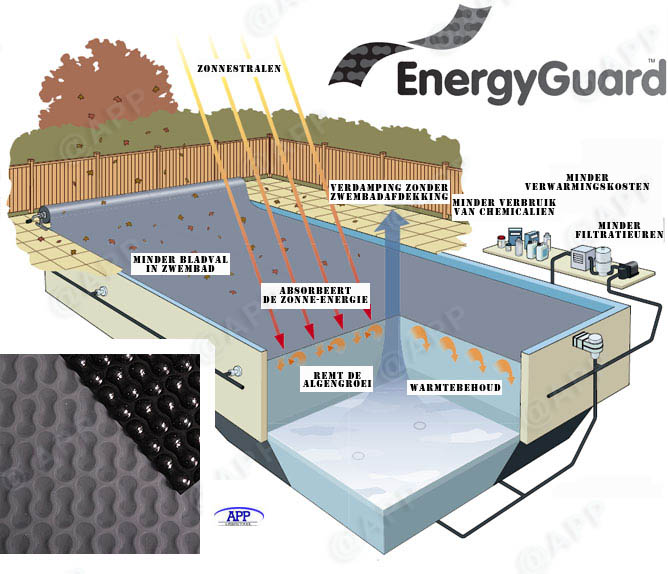 Deze noppenfolieafdekking wordt op het wateroppervlak geplaatst met de noppen naar